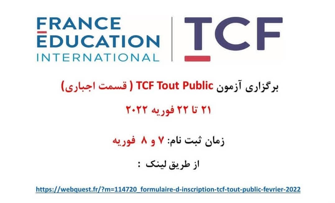 ثبت نام آزمون TCF Tout Public شروع شد. زمان ثبت نام 5 و 6 دسامبر و زمان آزمون 21 تا 23 دسامبر می باشد.